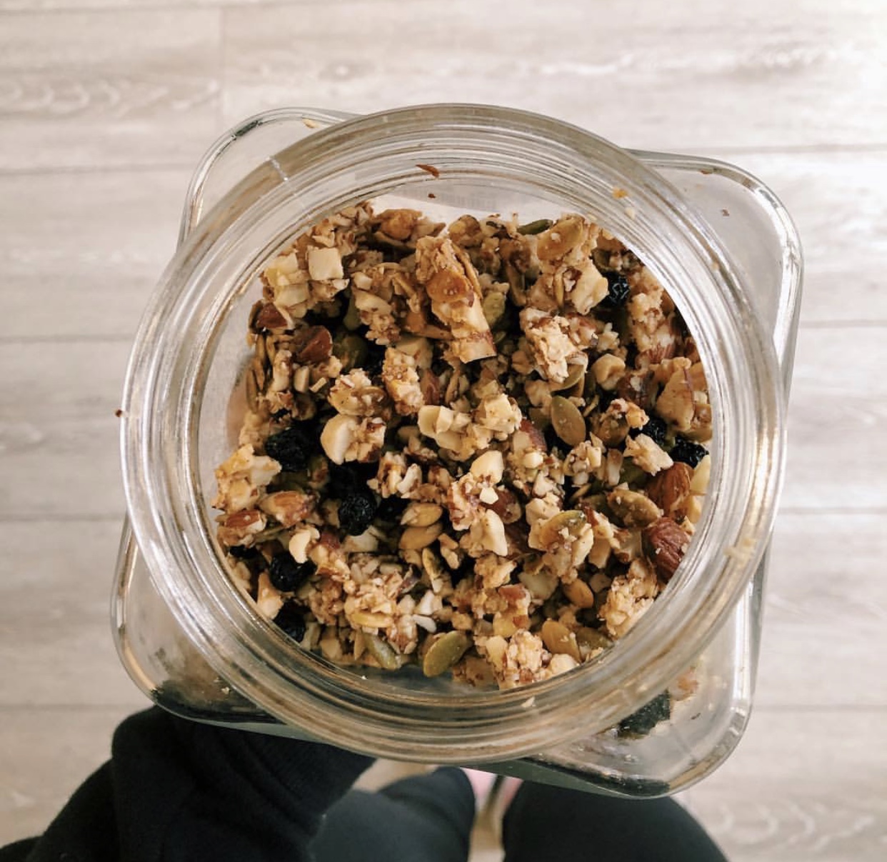 Granola is amazing for multiple reasons, but the biggest one is just how versatile it is! It’s great for breakfast with any kind of milk or yogurt, accompanied alongside fresh fruit for a snack, crunchy topping for a salad, or just as something to munch on. The best thing about making it yourself is that you can customize it exactly how YOU want to! I’ve played around with this recipe and made it both grain free and with oats, and it’s delicious both ways.