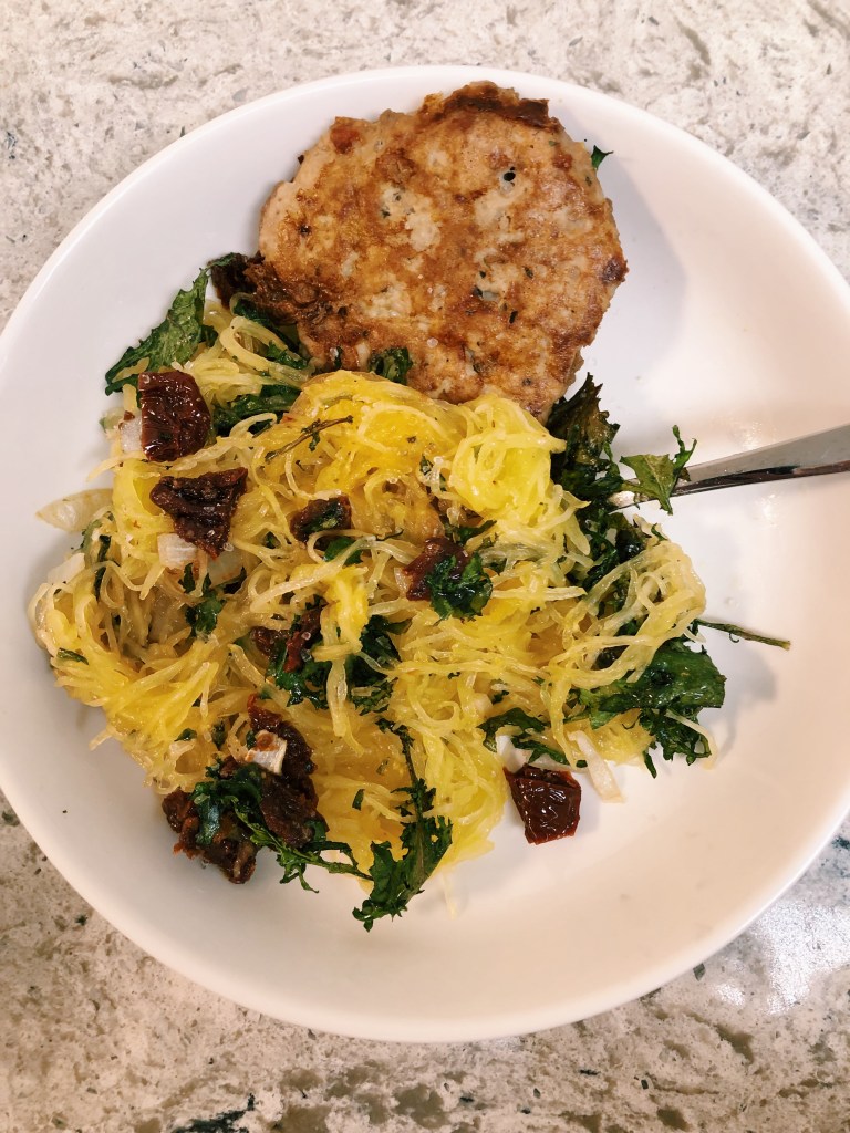 If you, like me, are new to cooking spaghetti squash and need some instructions on how to cook it, check out this link. It’s really easy!