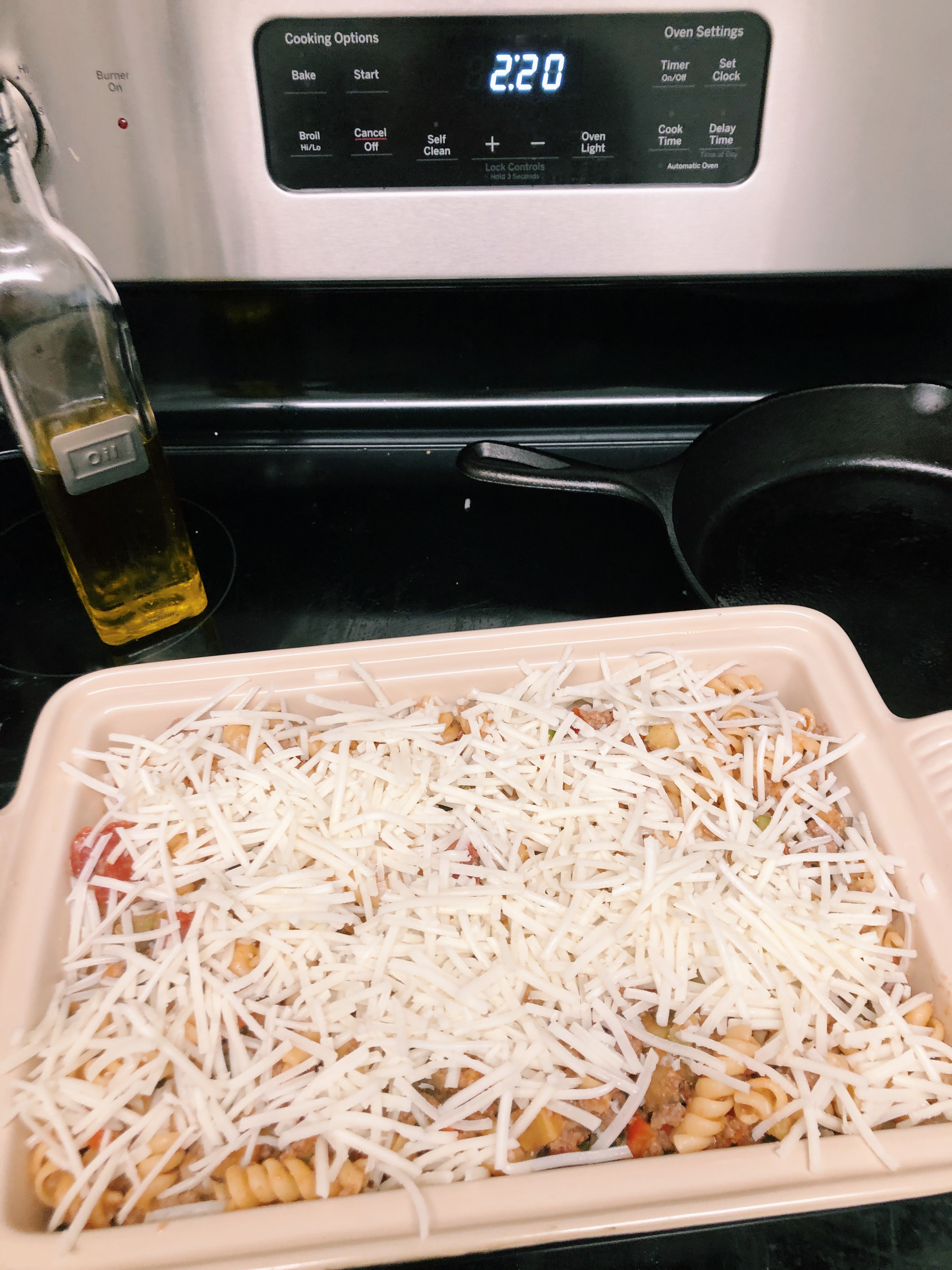 For about the last year and a half, Cody and I have both been dairy-free, for a variety of health reasons. The transition wasn’t too hard for me, especially with all of the great dairy substitutes that are out there now. Oatly oat milk, Forager yogurt, and coconut oil (as a swap for butter) were all pretty easy things for me to switch to. However, the one thing that is really lacking in the dairy-free industry, is a good cheese… They just don’t taste the same! My poor husband. That was a big one for him. For the last year (no, that is not an exaggeration), he has been asking me to make a good lasagna, or pasta bake, or something that tastes like the “Chicken spaghetti” he used to make. I’d been putting it off because, selfishly, I’m not a big pasta fan, and it seemed like a rather big endeavor for something I wouldn’t really enjoy myself.